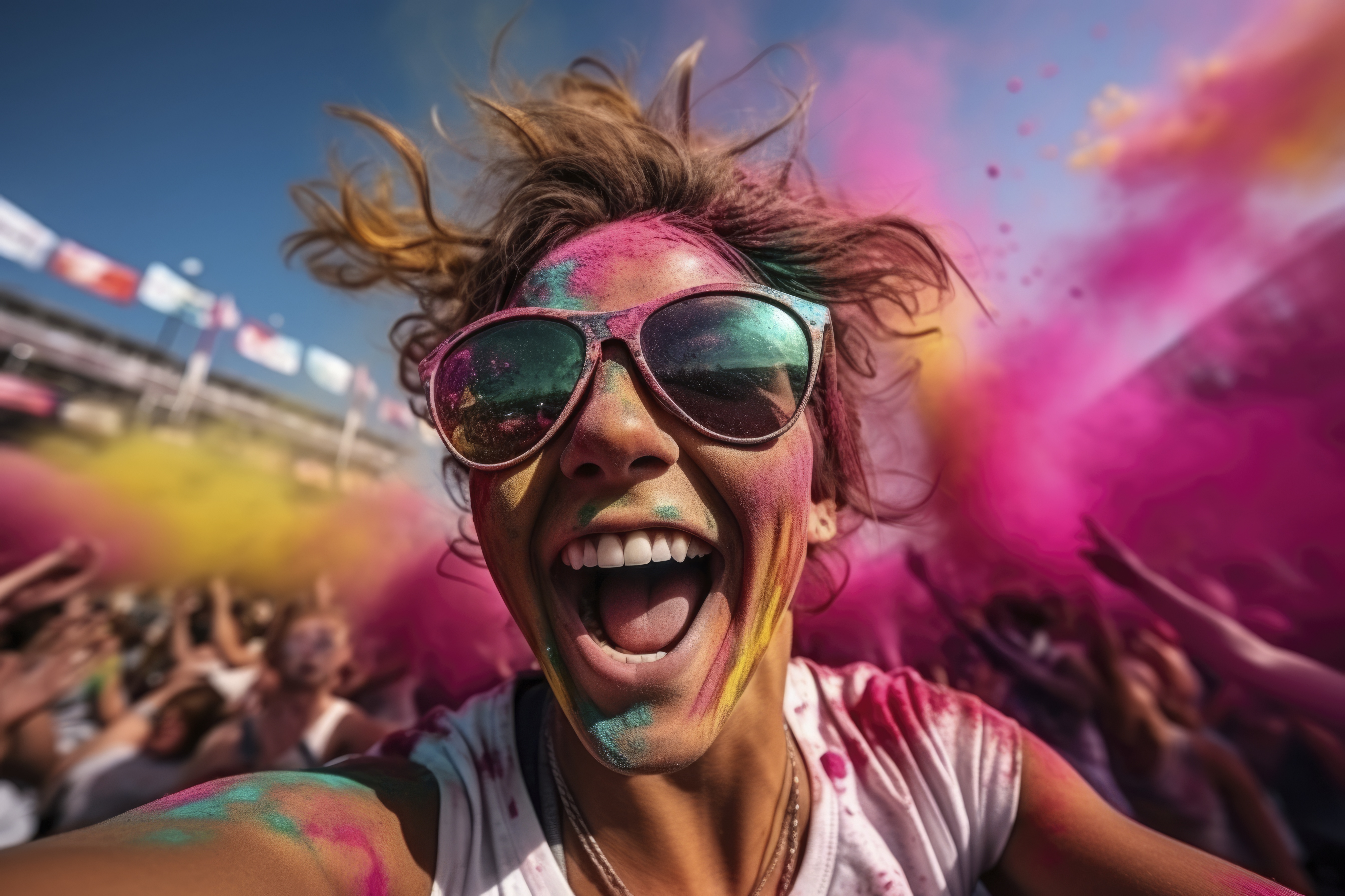 Get ready to lose yourself in a hippie soul’s dream, where the air is a trippy kaleidoscope of neon clouds and pure, unrefined joy.